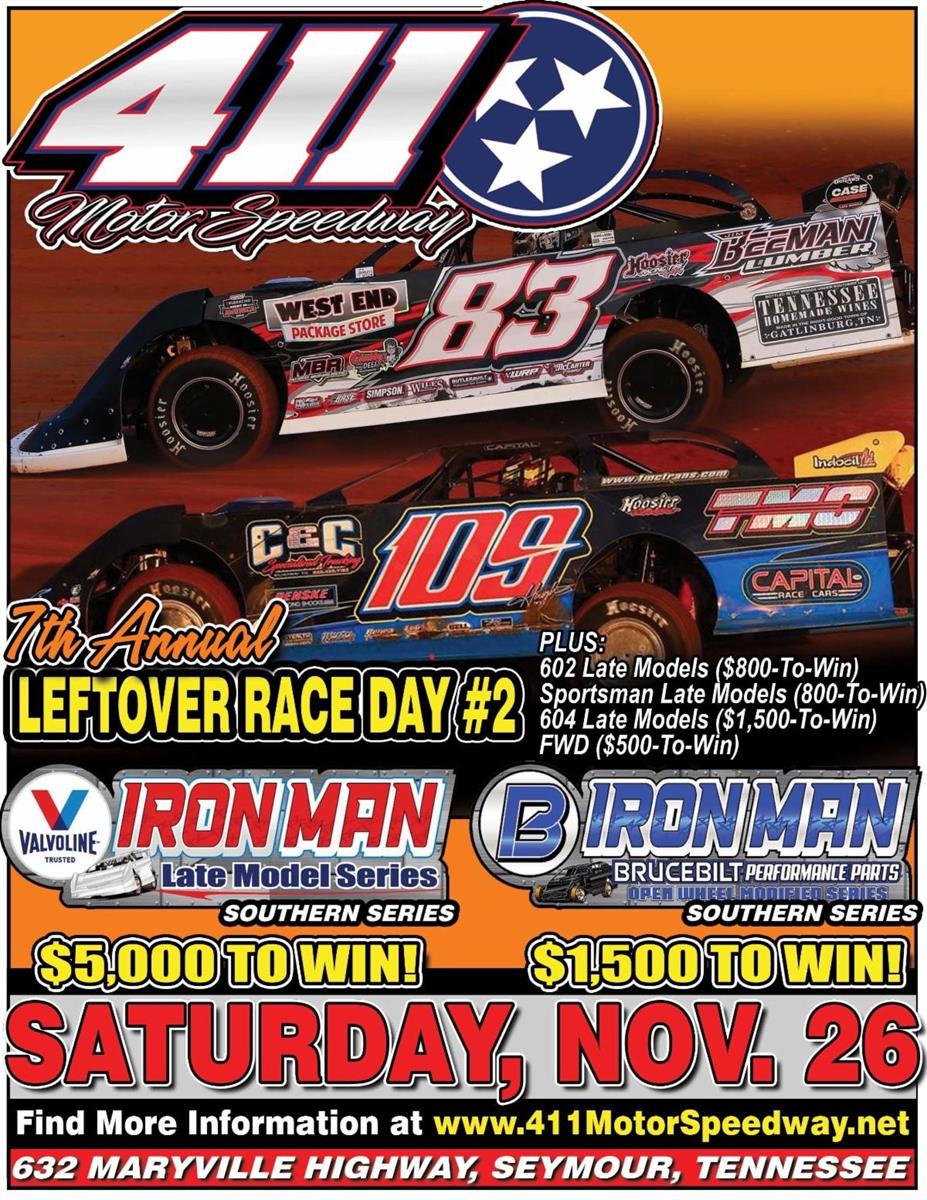 SOMERSET, KENTUCKY (November 20, 2022)- The Valvoline Iron-Man Late Model Southern Series and Brucebilt Performance Parts Iron-Man Open Wheel Modified Southern Series will conclude their 2022 racing season at 411 Motor Speedway in Seymour, TN on Saturday November 26 with the 7th Annual Leftover. The Valvoline Iron-Man Late Model Southern Series will be in action for $5,000 to win/$450 to start and the Brucebilt Performance Parts Iron-Man Modified Southern Series will compete for $1,500 to win/$150 to start, along with crowning the 2022 champions for both series.