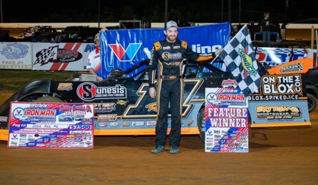 The win by Rice, a 24-year old second-generation racer would be his seventh career Valvoline Iron-Man Late Model Series victory and would come aboard the Sunesis Holdings, BLOX Spiked Ice, Extreme Sportswear, Map It Right Engineering and Land Surveying, Chain Locker USA, Maxwell Trucking, AirMax Motorsports, Northern Kentucky Equipment sponsored Rocket Chassis with a Vic Hill Race Engine providing the horsepower under the hood.