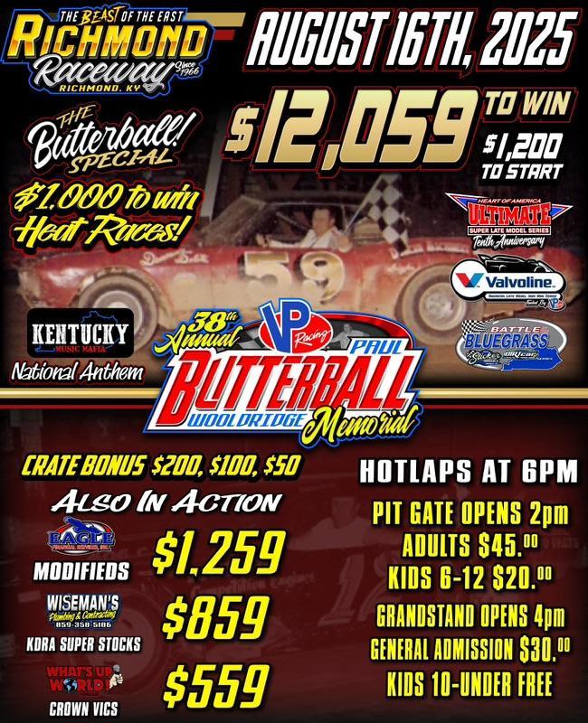 On Saturday August 16, the 38th Annual VP Racing Fuels Paul “Butterball” Wooldridge Memorial features a trio of series racing 59-laps for $12,059-to-win and $1,200-to-start in an event that boasts a feature purse in excess of $55,000 posted by Bill & Stacy Lupinos. In addition, each Heat Race winer will receive $1,000.